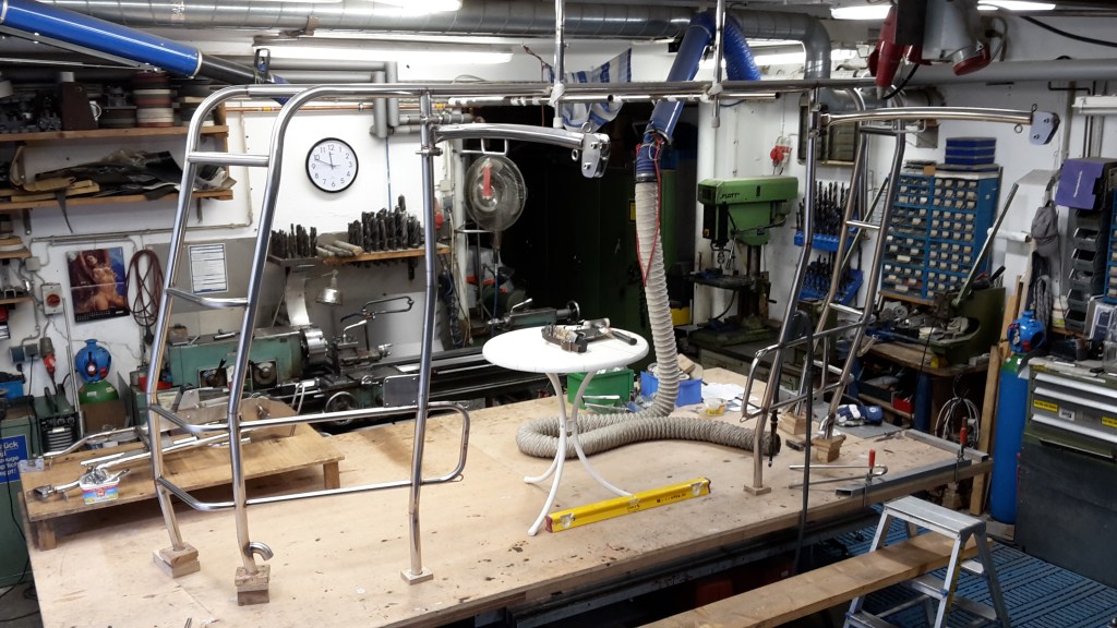 The boat work is also progressing. I went to Tropea in February together with Florian from Edelstahl Haese in Berlin. I met Florian at the boat show in Dusseldorf and was impressed with their experience with building custom made equipment arches for boats located all across Europe. We agreed to fly to Tropea to take all the measurements he needed to design a stainless steel arch that not only looks good but that can carry solar panels, davits for a dinghy and an outboard engine, antennae for AIS, GPS and an Iridium Go satellite telephone at the same time as it offers protection from the sun at the helm and lighting for the cockpit. A true Kinderegg.