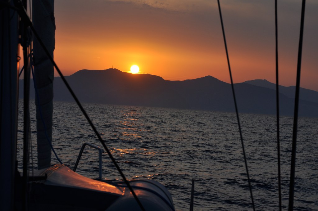 I left my new-found friends the following morning with an aim to reach Lipari in the Aeolians before it was dark. I also wanted to time it so that I passed through the Messina Strait at around 2 pm as this would give me a 2.5 knot current pushing me through the strait. I managed to time the currents perfectly but arrived at Lipari 15 minutes after sunset. For a Swede, a Mediterranean sunset is a very different experience. I am used to the long summer nights when it takes up to an hour for the sun to set and that it never really gets that dark as the sun never really dips that far below the horizon. In the Mediterranean, sunset is a 15-minute affair. At best. And then it gets pitch black. But those 15 minutes are often spectacular! This meant that I had a beautiful approach to Lipari in the west but that I had to anchor in the dark with the city lights as my only guide. I chose a spot next to three larger boats outside a marina. A little too close to land for my liking and in waters deeper than ideal. The next morning, I also found out that the anchor had landed in thick vegetation as I started dragging as soon as the wind picked up just before lunch time.