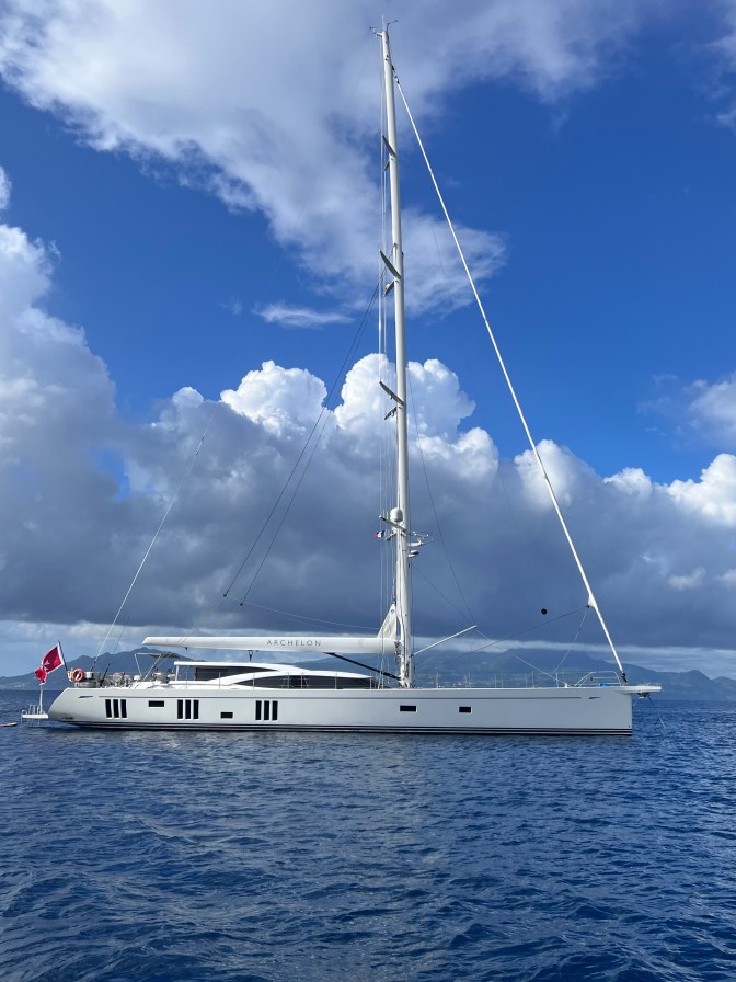 Hi Chelle. Great quote. Never heard that before. That’s a lot of animals. Hard to bring on a boat! We left Kenneth (that’s what we called him) at a vet in Martinique. Saoirse 2.0 is an Oyster. The AIS said it was 121 feet long. Quite possibly out of my price range. I think I will stick to what I have. And I have the same view every morning anyway. This place is fantastic but we will move on tomorrow. Best. Tomas