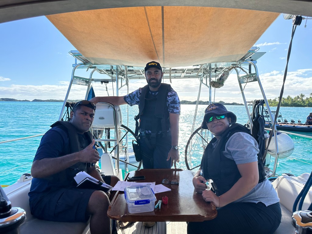 The cruising community also appears to have caught the interest of the Fijian authorities. During my two months in the country I have been boarded no less than five times. Often by a combination of authorities. Fijian coast guard, customs, immigration, police, navy and once even by the US Coast Guard. Most of the time it’s a little hard to understand what it is that they are looking for. It’s not like I’m targeted, they go to every boat in an anchorage. And every time there is a whole host of people that have to come onboard which makes it very difficult to move around on Saoirse and even more difficult to find whatever they hope to find. Particularly as most of them are very large to put it delicately and they clearly have very limited experience when it comes to moving around on a small boat. They have all been very nice and happy to chat and be photographed but it’s just a lot of officials every time and you have to make sure that they don’t break things in their effort to find whatever they are looking for.