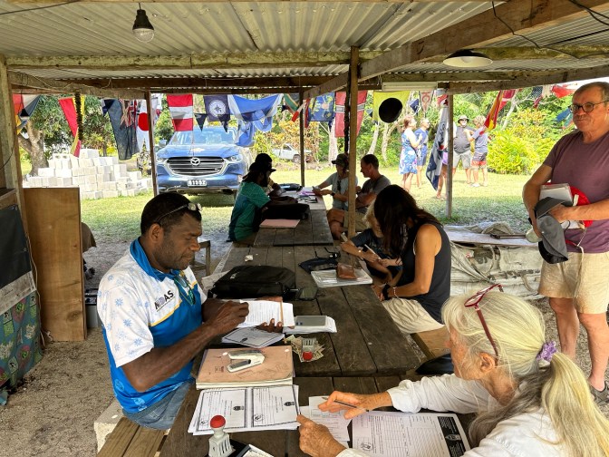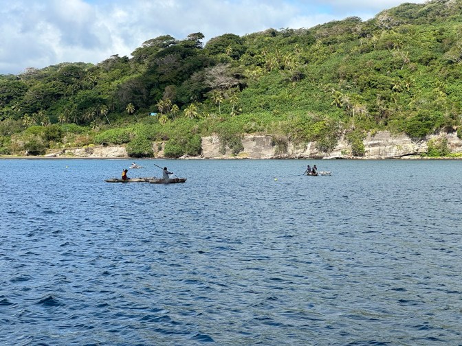 The other day I got to fulfil that promise. I arrived in Port Resolution, a bay in the shadow of Mount Yasur. Together with Samadhi and Celt. The bay is named after the ship that Captain Cook arrived on exactly 250 years ago and it really felt like very little has happened here since then. If islands that I visited in the Tuamotus, Tonga and Fiji felt remote, Tanna is at a different level. We were the attraction here! Wherever we went the locals tapped each other and pointed at us. All smiling, waiving and greeting us. Either from the side of the road as we travelled across the island or from their dugout canoes as they were casting fishing nets in the bay. I realise that they get a few cruisers that turn up every year, primarily to see the volcano, but it truly felt like we were the first since Captain Cook. And when we visited the neighbouring island, one without a world famous volcano, our visit caused even more of a commotion. I doubt that even Captain Cook stopped there.