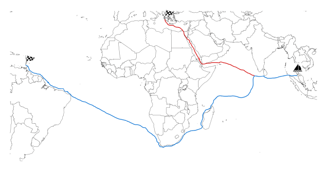 While I’m waiting for deliveries and Saoirse’s scheduled haul out, I thought I should share some of my sailing plans for the upcoming year. In doing so though, I want to emphasise that long term plans for a long distance sailor are far from concrete. They are more of a ‘concept of a plan’ as someone famously phrased it. There are numerous things that can happen that may force me to make alterations. Boat problems, weather or political instability to name a few. Or it can just be something as simple as coming up with a better plan along the way. One that brings me to some cool place that I haven’t even thought of. I guess my point is that I’m not sure I even want to plan this far ahead. But with only 130 nautical miles to Phuket in Thailand I’m coming to a crossroad. One that forces me to make a decision on where to head next. Do I pass Africa to the north or the south?